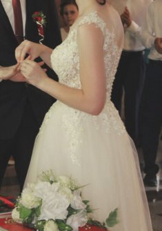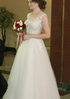Красивое платье цвета Шампань, многослойная сетка, без колец, на спине пуговицы и замок, имеется защитный чехол