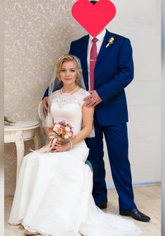Платье покупали в свадебном салоне "Дом свадьбы". Цвет айвори (тёплый оттенок). Ткань атлас, а поверх кружево. Фасон русалка, есть небольшой шлейф. Регулировка шнуровкой по размеру. Платье очень красивое и элегантное! *чехол для платья в подарок. *возможен небольшой торг.