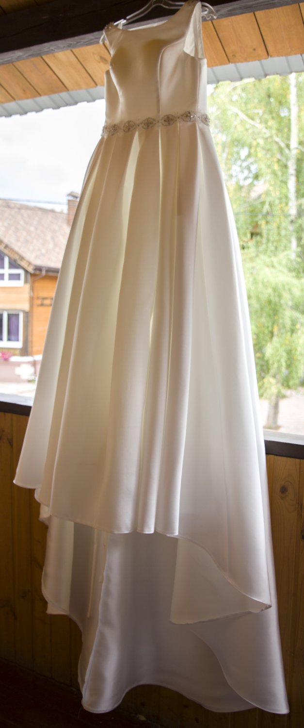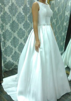 Продаю атласное свадебное платье. Надевалось один раз, после химчистки. Цвет платья белый, имеется небольшой шлейф, который можно убрать, пристегнув на пуговку, в юбке находятся два глубоких кармана. Размер 40-44, из новой коллекции 2018 года, куплено в салоне "Дом Свадьбы". Отдаю вместе с платьем фирменный чехол. Звоните в любое время.