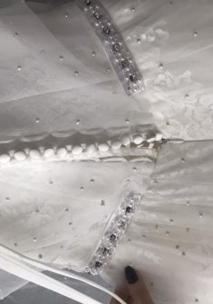 Носилось бережно, проведена химчистка, платье подшитое, в идеальном состоянии. Цвет ближе к «пломбир», 10 юбок, корсет, жемчужная россыпь по всему платью, вышивка, блестящий пояс с камнями. Подъюбник (2 кольца) отдам в комплекте.