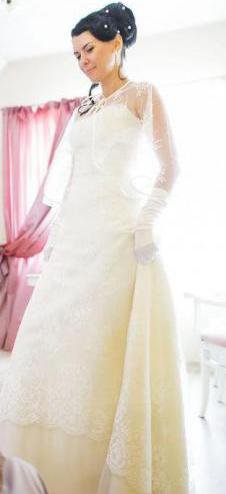 Продам свадебное платье с кружевной накидкой цвета айвори. Платье в идеальном состоянии, небольшой шлейф. Аксессуары (перчатки, бусы, шпильки) в подарок. Платье идеально подойдёт под свадебную церемонию в стиле прованс.