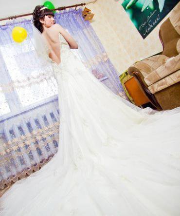 ПРОДАМ ОЧЕНЬ КРАСИВОЕ СВАДЕБНОЕ ПЛАТЬЕ! Hазвание CLAVA. По всему платью ручная вышивка бисером. Платье со шлейфом(шлейф подстегивается). После VIP-химчистки. Состояние отличное. В ПОДАРОК: ожерелье, серьги и диадема из натурального жемчуга, перчатки. Покупали в г. Димитровград.
