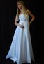 Платье модного покроя, в греческом стиле. Французское кружево на лифе вышито жемчугом (Польша), и бисером (PRECIOSA). Тонкие бретели не утяжеляют модель, зрительно удлиняя фигуру. Аккуратная "корзиночка" и роза с бантом делают модель кокетливой и женственной. Юбка из благородного матового атласа, две встречные складки расположены под драпированным поясом. Потайная молния с широкой шнуровкой позволяет уменьшить лиф платья на 1-2 размера.
