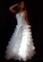 Платье классического покроя в европейском стиле, одевается без колец. Воланчики разных размеров создают эффект струящегося каскада. Элегантный бантик завершает этот нежный образ. Платье с заниженной линией талии, корсет мягко драпирован матовой органзой. Модель декорирована вышивкой SWAROVSKI.