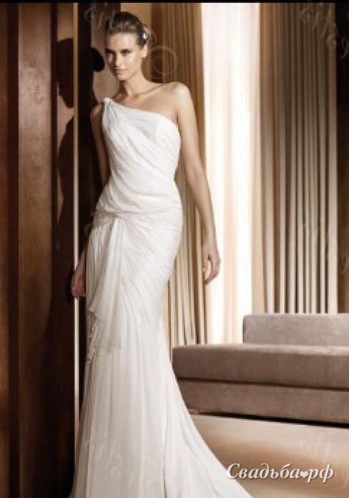 Это платье очень коварное, оно подойдет только высоким девушкам со стройной фигурой. Но если вы остановите свой выбор на нем, вы будете самой элегантной и утонченной невестой. Легкое платье, не отягощенное никакими лишними деталями. Юбка прямая, ниспадающая к полу мягкими волнами. Лиф свободный, бретель на одно плечо. Отличный выбор для изысканной невесты. Размеры: 42, 44, 46.