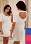 Красивое и нежное платье для милой девушки. Однотонное платье с рукавами в три четверти и простым прямым кроем могло бы и не привлечь внимание, если бы не спина. Это главный акцент платья – вырез на спине в виде сердца. Очень притягательно и соблазнительно выглядит изгиб спины в этом вырезе. Размеры: 44, 46