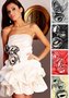 Платье для дерзкой и немного инфантильной девушки. Лиф платья украшен стразами по линии декольте. Короткая юбка состоит из множества воланов и рюшей. Также акцент сделан на талии – сбоку имеется три большие розы из ткани. Образ очень веселый и легкий. Размеры: 42