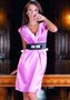 Атласное платье так и сверкает в солнечных лучах. Длина до колен и неглубокий вырез делают платье уместным даже в офисе. Главный акцент здесь сделан на талии – это вставка из ткани контрастного цвета в виде пояса, что делает вашу талию еще тоньше. Дополнительно пояс декорирован стразами. Размеры: 44