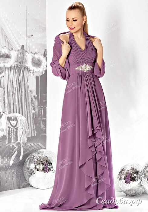 Размеры: 6-28. Платье чистого лавандового цвета - для нежных возвышенных натур. Мягкие складки и драпировки, и идущее в комплекте болеро создают удивительно спокойный женственный образ, который располагает с первого взгляда.